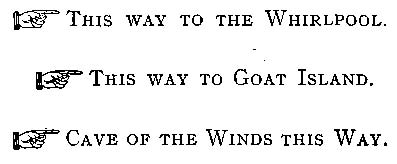 | Friday The naming goes recklessly on, in spite of anything I can do. I had a very good name for the estate, and it was musical and pretty—GARDEN-OF-EDEN. Privately, I continue to call it that, but not any longer publicly. The new creature says it is all woods and rocks and scenery, and therefore has no resemblance to a garden. Says it looks like a park, and does not look like anything but a park. Consequently, without consulting me, it has been new-named —NIAGARA FALLS PARK. This is sufficiently high-handed, it seems to me. And already there is a sign up: