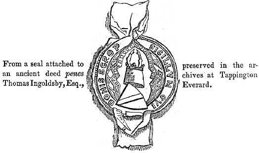 WE come now to the rummaging of Father John's stores. The extracts which I shall submit from them are of the same character as those formerly derived from the same source, and may be considered as theologico-historical, or Tracts for his times. With respect to the first legend on this list, I have to remark, that, though the good Father is silent on the subject, there is every reason to believe that the "little curly-wigged" gentleman, who plays, though passively, so prominent a part in it, had Ingoldsby blood in his veins. This conjecture is supported by the fact of the arms of Scroope, impaling Ingoldsby, being found, as in the Bray case, in one of the windows, and by a very old marriage-settlement nearly, or quite, illegible, a fac-simile of the seal affixed to which is appended to this true history. |