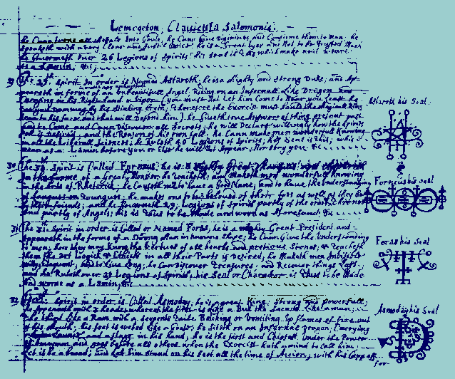 This month the 6th and 7th meetings will be held. The 6th is devoted to the Magick of Great Forces, Demons, morals and safety in the Great Work, creative and destructive aspects of the deities and other aspects of Magick that relate to Geburah (#5) on the Qabalistic Tree of Life. Some aspects of the traditional, personified Qliphoth will be presented, traditional Grimoires will be discussed and methods of adaptation to modern circumstances and Thelemic perspective will be provided. Some further developments of the Abra-Melin system will also be carried forward from the 5th meeting. One particular aspect of the 6th meeting involves morality in dealing with dangerous workings. There is a special way to deal with destructive energies that cannot safely be ignored. In like manner, compulsions and attractions are delicately balance. Guidelines in splitting the fatal hair are all important. Some of the material presented will be accounts of personal experience; and that old favorite, astral body-switching for sex will again rear its head. If you are thinking of working with the Goetia, don't miss this meeting!