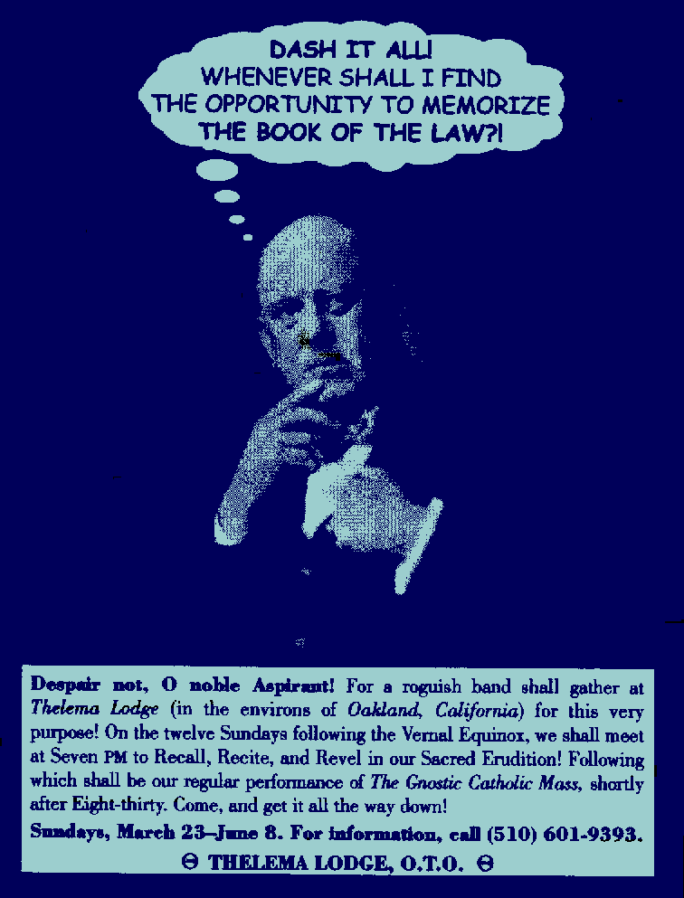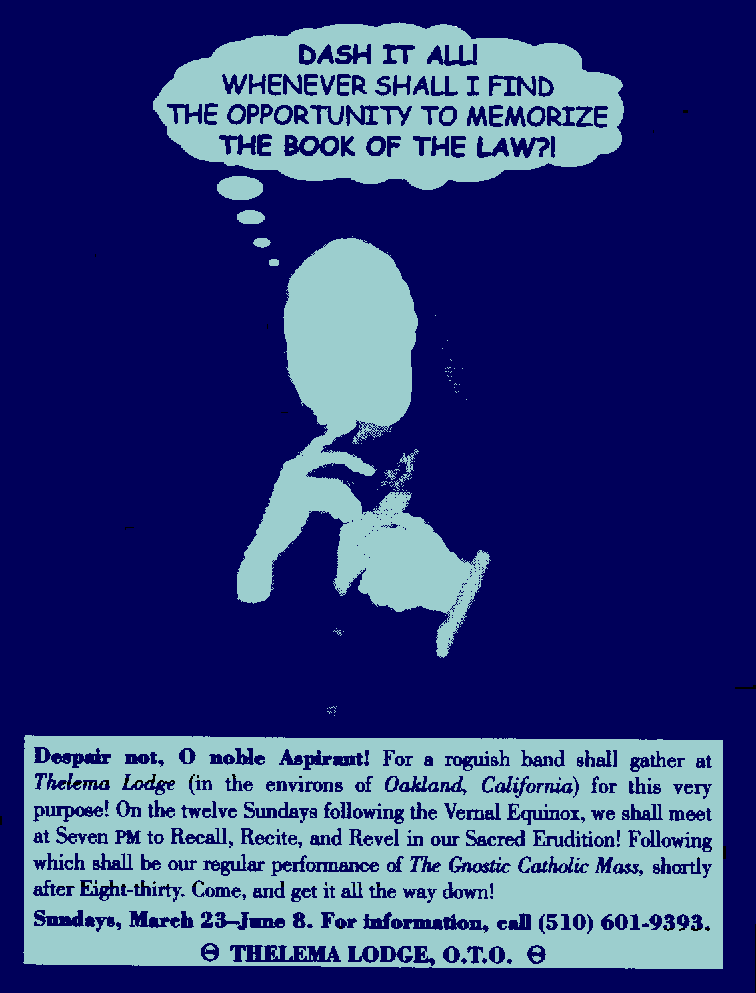 3/16/03 | Gnostic Mass 7:30PM Horus Temple | (510) 652-3171 | Thelema Ldg. |